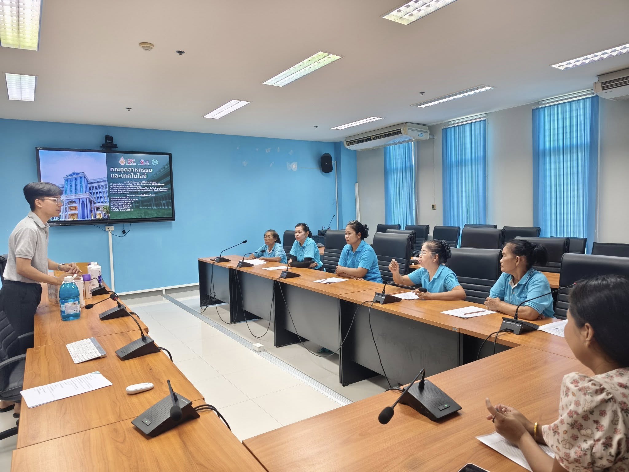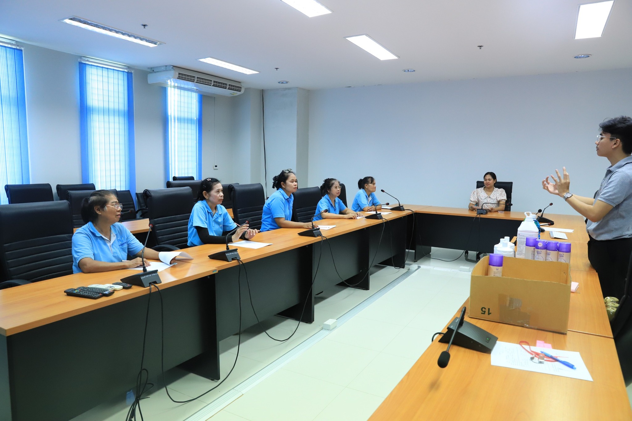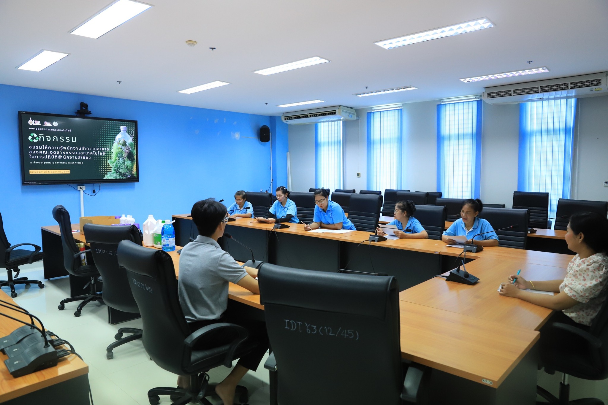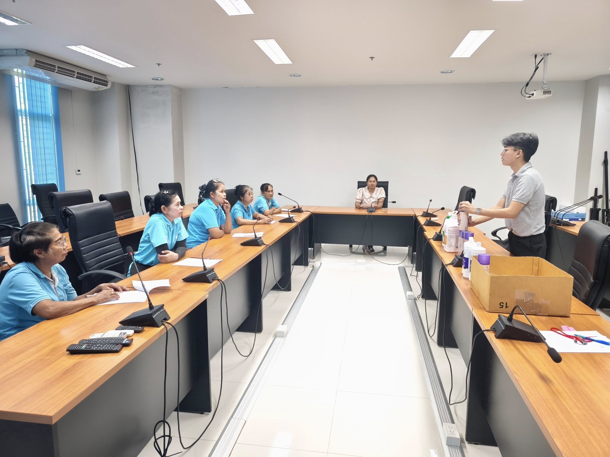 ในวันที่ 5 สิงหาคม 2568 ดร.รักชนกชรินร์ พูลสุวรรณนธี คณบดีคณะอุตสาหกรรมและเทคโนโลยี มอบหมายให้ นางสาวพรวิมล ประภาสถิต และนายศิลา จีนเสมียน เป็นผู้ถ่ายทอดและอบรบให้ความรู้พนักงานทำความสะอาดที่ดูแลรับผิดชอบในแต่ละชั้น โดยได้มีการอบรมให้ความรู้ในเรื่องของ นโยบายการจัดการสำนักงานสีเขียว มาตรการและแนวทางปฏิบัติด้านการจัดการพลังงานและสิ่งแวดล้อม การแยกขยะ รวมถึงการใช้ผลิตภัณฑ์ที่เป็นมิตรกับสิ่งแวดล้อม เพื่อองค์กรที่น่าอยู่ โดยคำนึงถึงผลกระทบต่อสิ่งแวดล้อมในทุกมิติในการประหยัดน้ำ ไฟฟ้า น้ำมันเชื้อเพลิง กระดาษ อุปกรณ์สำนักงาน ให้คุ้มค่า และมีประสิทธิภาพสูงสุด ณ ห้องประชุมคณะอุตสาหกรรมเทคโนโลยี