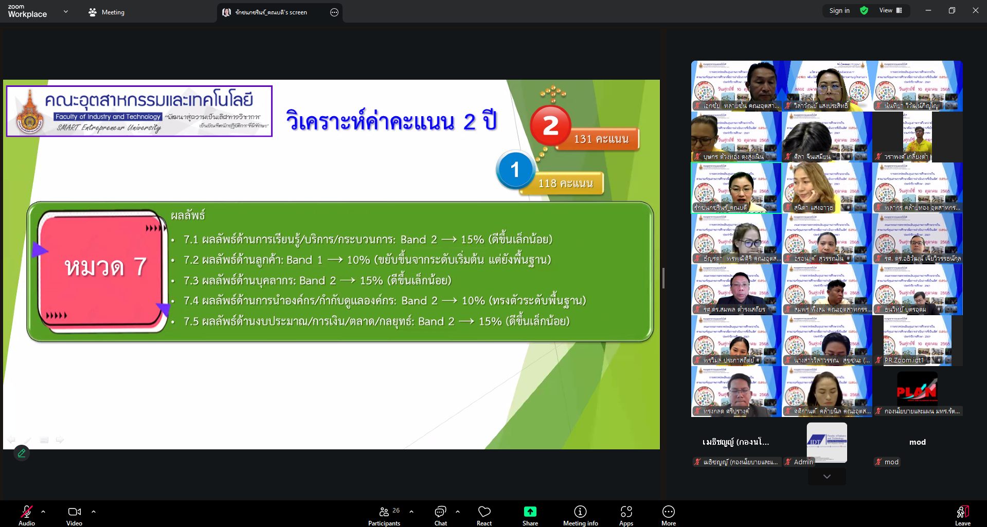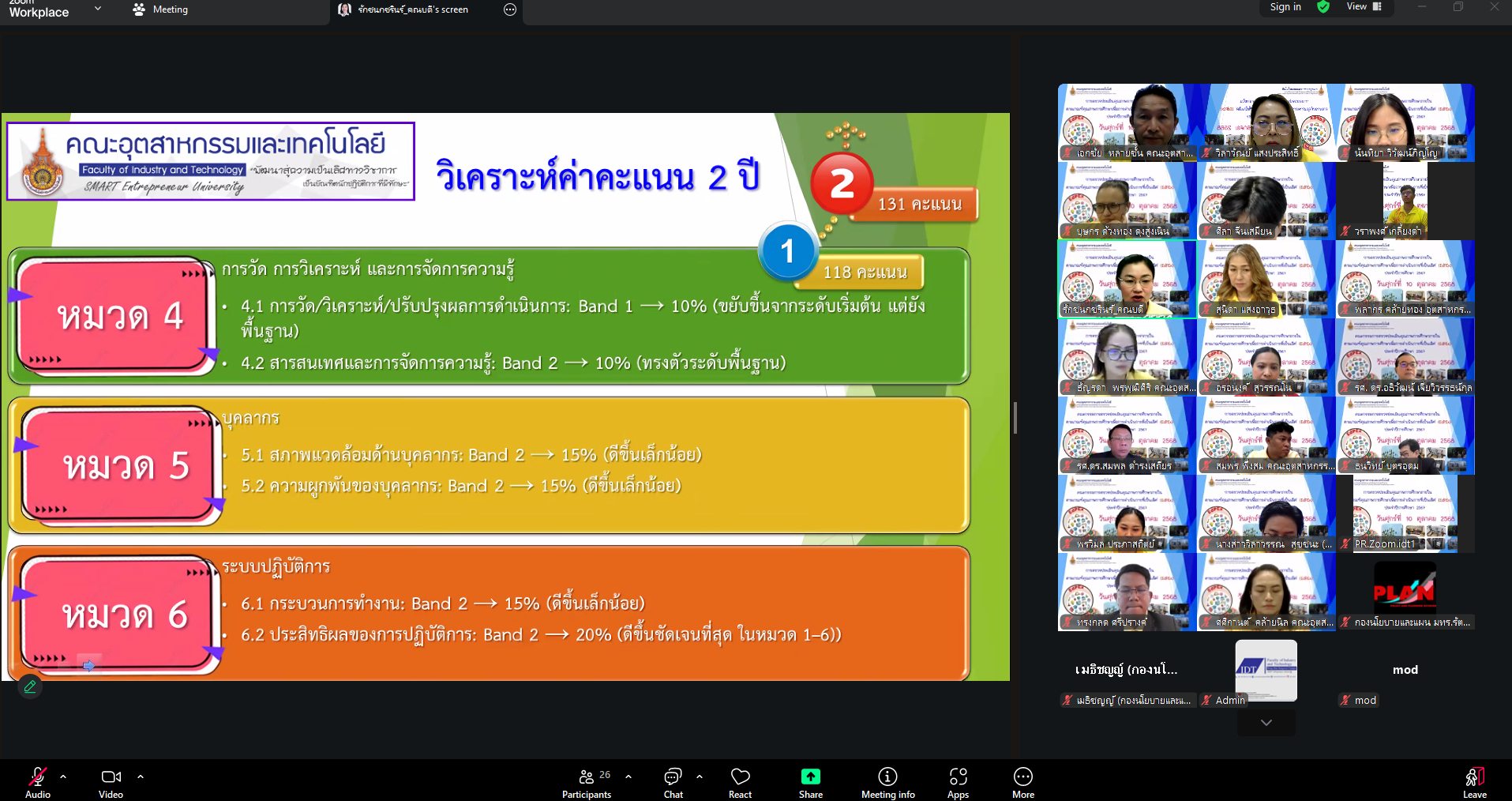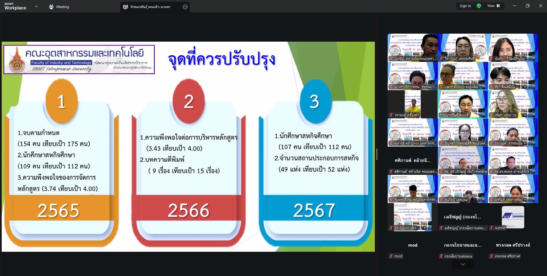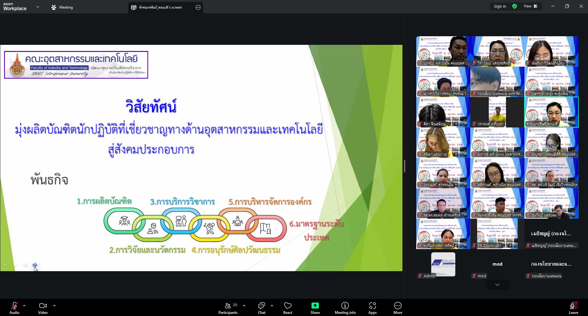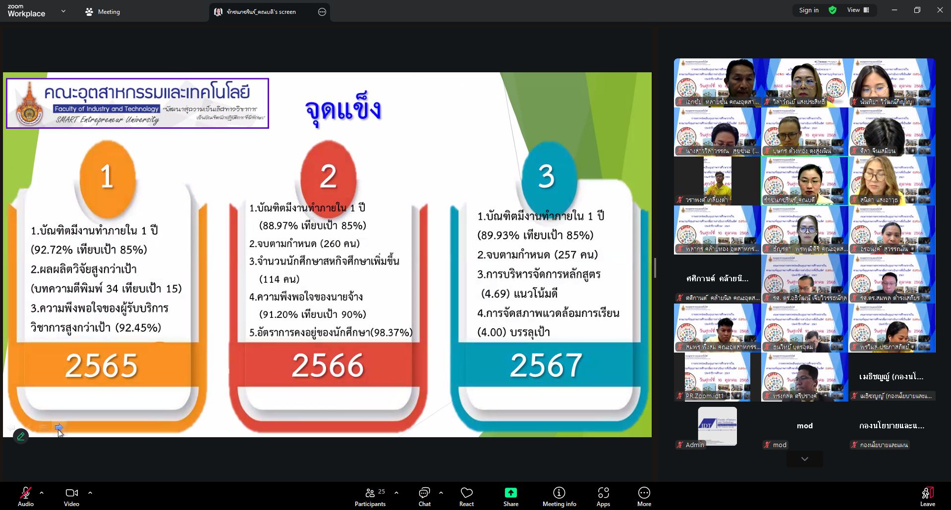 ในวันศุกร์ ที่ 10 ตุลาคม 2568 คณะอุตสาหกรรมและเทคโนโลยี เข้ารับการตรวจประเมินคุณภาพการศึกษาภายในตามเกณฑ์คุณภาพการศึกษาเพื่อการดำเนินการที่เป็นเลิศ (EdPEx) ประจำปีการศึกษา 2567 ปีงบประมาณ พ.ศ.2568 นำโดย ดร.รักชนกชรินร์ พูลสุวรรณนธี คณบดีคณะอุตสาหกรรมและเทคโนโลยี พร้อมด้วยรองคณบดี คณาจารย์ และบุคลากรการศึกษา เข้าร่วมการตรวจประเมินคุณภาพการศึกษา ผ่านสื่ออิเล็กทรอนิกส์ (Zoom Meeting) ได้รับเกียรติจากรองศาสตราจารย์ ดร.อธิวัฒน์ เจี่ยวิวรรธน์กุล (ผู้ตรวจประเมินรางวัลคุณภาพแห่งชาติ (TQA Assessor)) รองผู้อำนวยการฝ่ายแผนและพัฒนาคุณภาพ สถาบันแห่งชาติเพื่อการพัฒนาเด็กและครอบครัว มหาวิทยาลัยมหิดล (ประธานกรรมการ) รองศาสตราจารย์ ดร.สมพล ดำรงเสถียร (ผู้ตรวจประเมินรางวัลคุณภาพแห่งชาติ (TQA Assessor))หัวหน้าภาควิชาครุศาสตร์สถาปัตยกรรมและการออกแบบ คณะครุศาสตร์อุตสาหกรรมและเทคโนโลยี สถาบันเทคโนโลยีพระจอมเกล้าเจ้าคุณทหารลาดกระบัง (กรรมการ) รองศาสตราจารย์ ดร.ธนวิทย์ บุตรอุดม (ผู้ตรวจประเมินระบบคุณภาพภายในองค์กร (TQA IQA)) ประธานหลักสูตรปรัชญาดุษฎีบัณฑิต (รัฐประศาสนศาสตร์) คณะมนุษยศาสตร์และสังคมศาสตร์ มหาวิทยาลัยราชภัฏอุดรธานี (กรรมการ) และนางสาวอรอนงค์ สุวรรณโณ มหาวิทยาลัยเทคโนโลยีราชมงคลรัตนโกสินทร์ กองนโยบายและแผน งานประกันคุณภาพ (เลขานุการ)