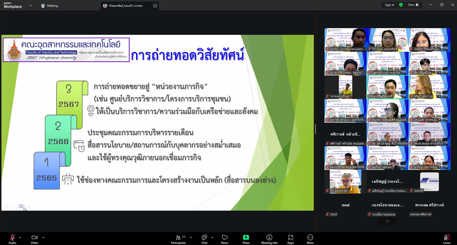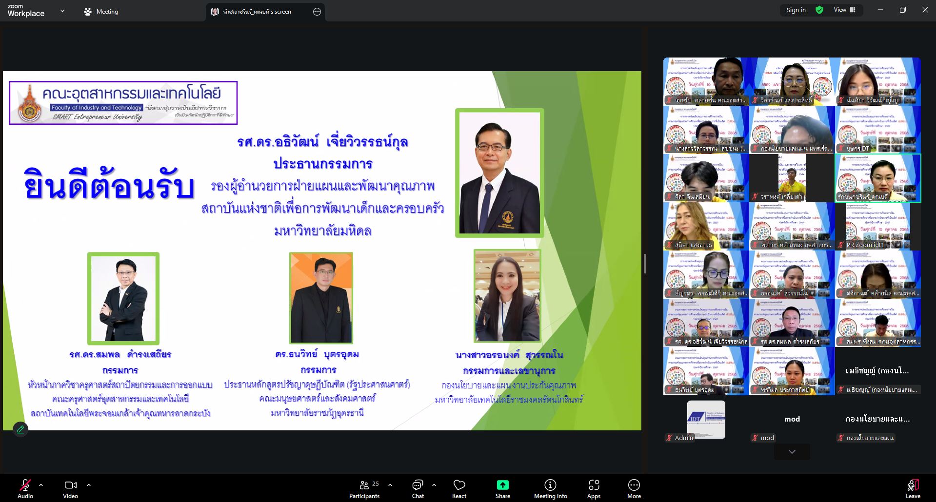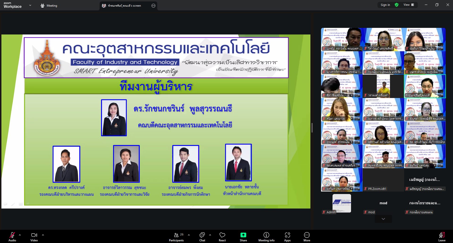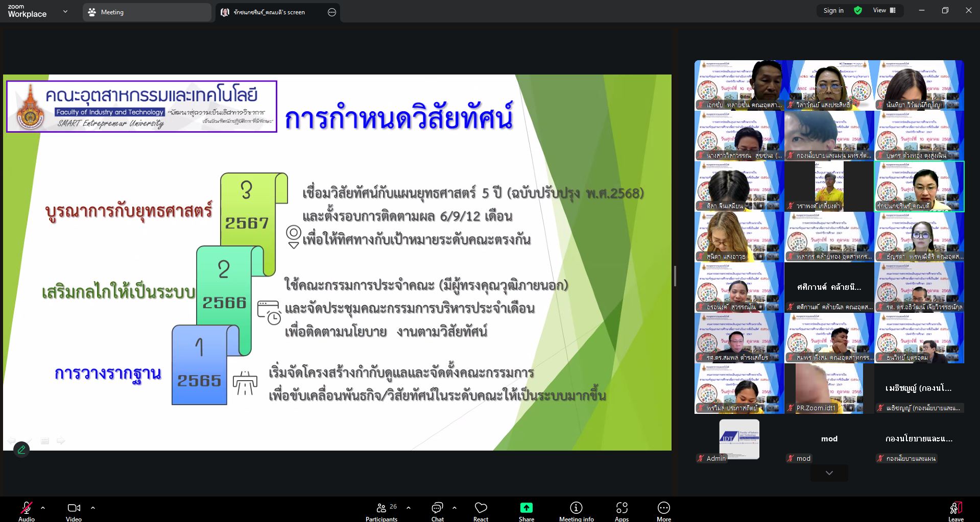 ในวันศุกร์ ที่ 10 ตุลาคม 2568 คณะอุตสาหกรรมและเทคโนโลยี เข้ารับการตรวจประเมินคุณภาพการศึกษาภายในตามเกณฑ์คุณภาพการศึกษาเพื่อการดำเนินการที่เป็นเลิศ (EdPEx) ประจำปีการศึกษา 2567 ปีงบประมาณ พ.ศ.2568 นำโดย ดร.รักชนกชรินร์ พูลสุวรรณนธี คณบดีคณะอุตสาหกรรมและเทคโนโลยี พร้อมด้วยรองคณบดี คณาจารย์ และบุคลากรการศึกษา เข้าร่วมการตรวจประเมินคุณภาพการศึกษา ผ่านสื่ออิเล็กทรอนิกส์ (Zoom Meeting) ได้รับเกียรติจากรองศาสตราจารย์ ดร.อธิวัฒน์ เจี่ยวิวรรธน์กุล (ผู้ตรวจประเมินรางวัลคุณภาพแห่งชาติ (TQA Assessor)) รองผู้อำนวยการฝ่ายแผนและพัฒนาคุณภาพ สถาบันแห่งชาติเพื่อการพัฒนาเด็กและครอบครัว มหาวิทยาลัยมหิดล (ประธานกรรมการ) รองศาสตราจารย์ ดร.สมพล ดำรงเสถียร (ผู้ตรวจประเมินรางวัลคุณภาพแห่งชาติ (TQA Assessor))หัวหน้าภาควิชาครุศาสตร์สถาปัตยกรรมและการออกแบบ คณะครุศาสตร์อุตสาหกรรมและเทคโนโลยี สถาบันเทคโนโลยีพระจอมเกล้าเจ้าคุณทหารลาดกระบัง (กรรมการ) รองศาสตราจารย์ ดร.ธนวิทย์ บุตรอุดม (ผู้ตรวจประเมินระบบคุณภาพภายในองค์กร (TQA IQA)) ประธานหลักสูตรปรัชญาดุษฎีบัณฑิต (รัฐประศาสนศาสตร์) คณะมนุษยศาสตร์และสังคมศาสตร์ มหาวิทยาลัยราชภัฏอุดรธานี (กรรมการ) และนางสาวอรอนงค์ สุวรรณโณ มหาวิทยาลัยเทคโนโลยีราชมงคลรัตนโกสินทร์ กองนโยบายและแผน งานประกันคุณภาพ (เลขานุการ)