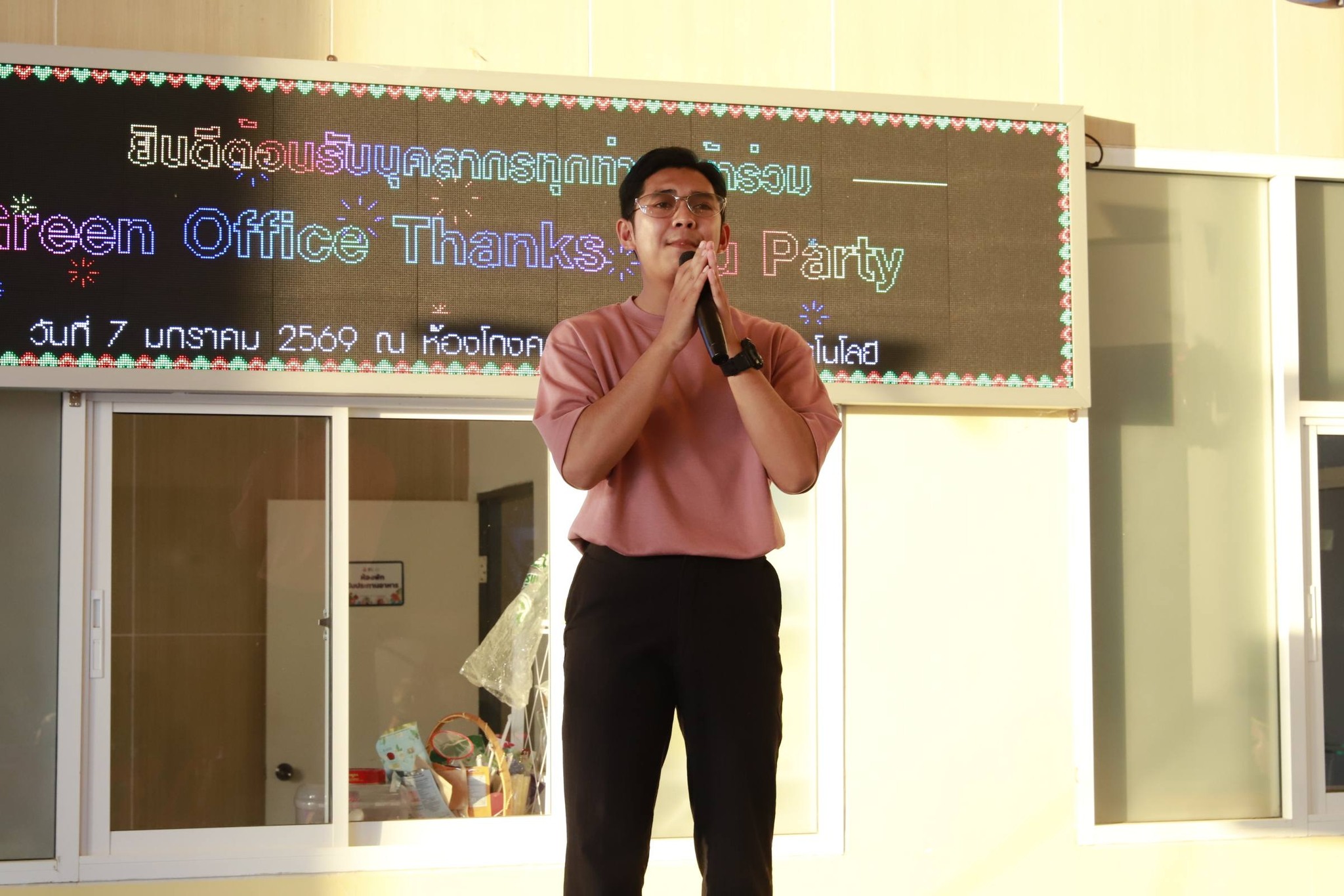 ในวันพุธที่ 7 มกราคม 2569 ผู้ช่วยศาสตราจารย์นภาพร นาคทิม รองอธิการบดีประจำวิทยาเขตวังไกลกังวล ร่วมกล่าวเปิดงาน Green Office Thank You Party คณะอุตสาหกรรมและเทคโนโลยี และมอบคำอวยพรเนื่องในโอกาสขึ้นปีใหม่ 2569 แก่ คณะผู้บริหาร คณาจารย์ บุคลากรทางการศึกษา และนักศึกษาคณะอุตสาหกรรมและเทคโนโลยี ที่เข้าร่วมงาน โดยงาน Green Office Thank You Party คณะอุตสาหกรรมและเทคโนโลยี จัดขึ้นเพื่อขอบคุณบุคลากรและนักศึกษาที่มีส่วนร่วมในการที่คณะอุตสาหกรรมและเทคโนโลยีได้รับรางวัลเหรียญทอง Green Office ในการตรวจประเมินรอบปีที่ผ่านมา โดยมี ดร.รักชนกชรินร์ พูลสุวรรณนธี คณบดีคณะอุตสาหกรรมและเทคโนโลยี เป็นประธานในการจัดงาน ณ โถงอาคารคณะอุตสาหกรรมและเทคโนโลยี