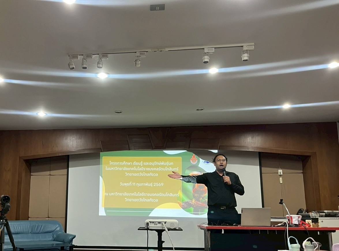 ในวันพุธที่ 11 กุมภาพันธ์ 2569 คณะอุตสาหกรรมและเทคโนโลยี ได้ดำเนินการจัดโครงการศึกษา เรียนรู้ และอนุรักษ์พันธ์นกในมหาวิทยาลัยเทคโนโลยีราชมงคลรัตนโกสินทร์ วิทยาเขตวังไกลกังวล โดยมีวัตถุประสงค์เพื่อผู้เข้าร่วมเห็นถึงความสำคัญของการศึกษาเรียนรู้เกี่ยวกับนกในท้องถิ่น ระบบนิเวศที่เหมาะสมต่อการอยู่อาศัย เพื่ออนุรักษ์พันธ์นกให้มีแหล่งที่อยู่อาศัยอย่างยั่งยืน และเกิดความหวงแหน ไม่เข้าไปรบกวนหรือทำลายแหล่งที่อยู่อาศัยของนก โดยอาจตั้งใจหรือไม่ได้ตั้งใจ ณ มหาวิทยาลัยเทคโนโลยีราชมงคลรัตนโกสินทร์ วิทยาเขตวังไกลกังวล ตำบลหนองแก อำเภอหัวหิน จังหวัดประจวบคีรีขันธ์